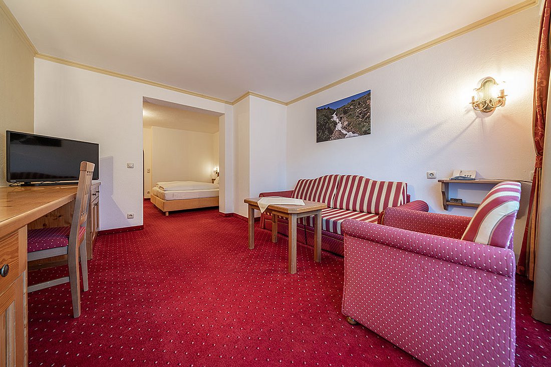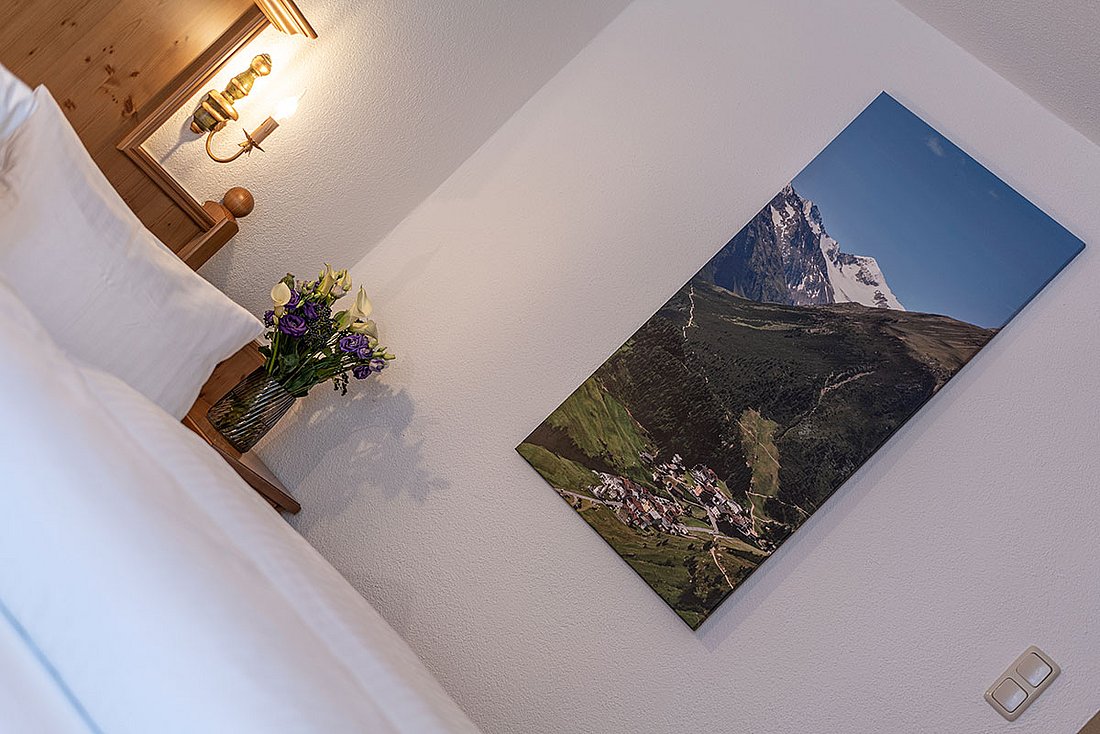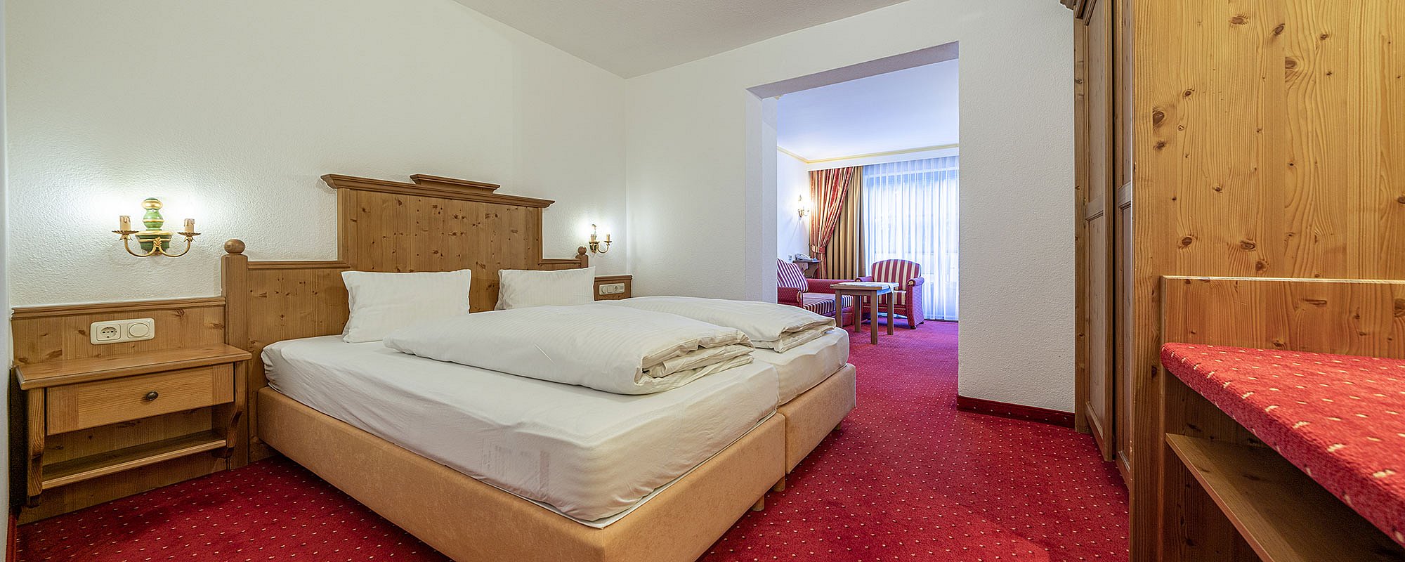 Unsere geräumigen Doppelzimmer Finailspitze punkten nicht nur mit einem gemütlichen Doppelbett und einem separaten Wohnzimmer. Auf dem großzügigen Südbalkon finden Genießer im Sommer wie im Winter ihren Platz an der Sonne.
